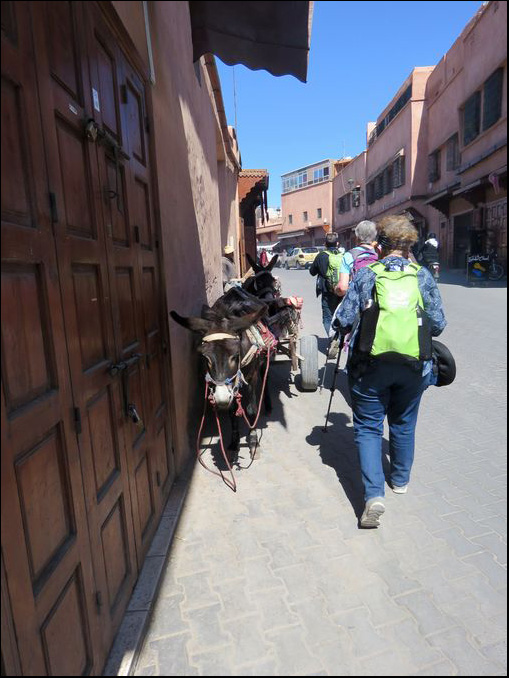 Walking to the riad where we stayed. Passing donkeys is common.