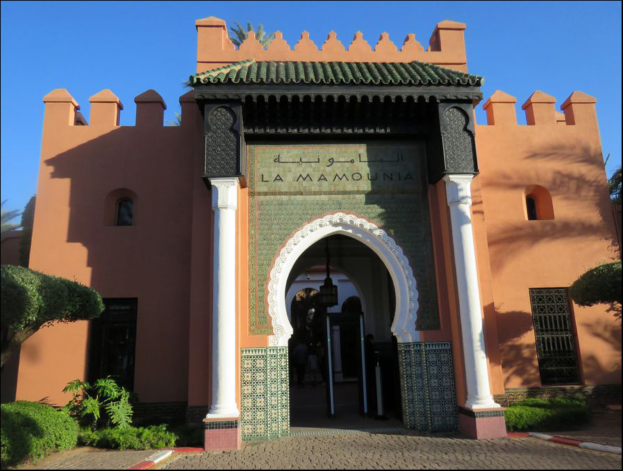 La Mamounia Hotel entrance. The hotel is a former royal estate dating