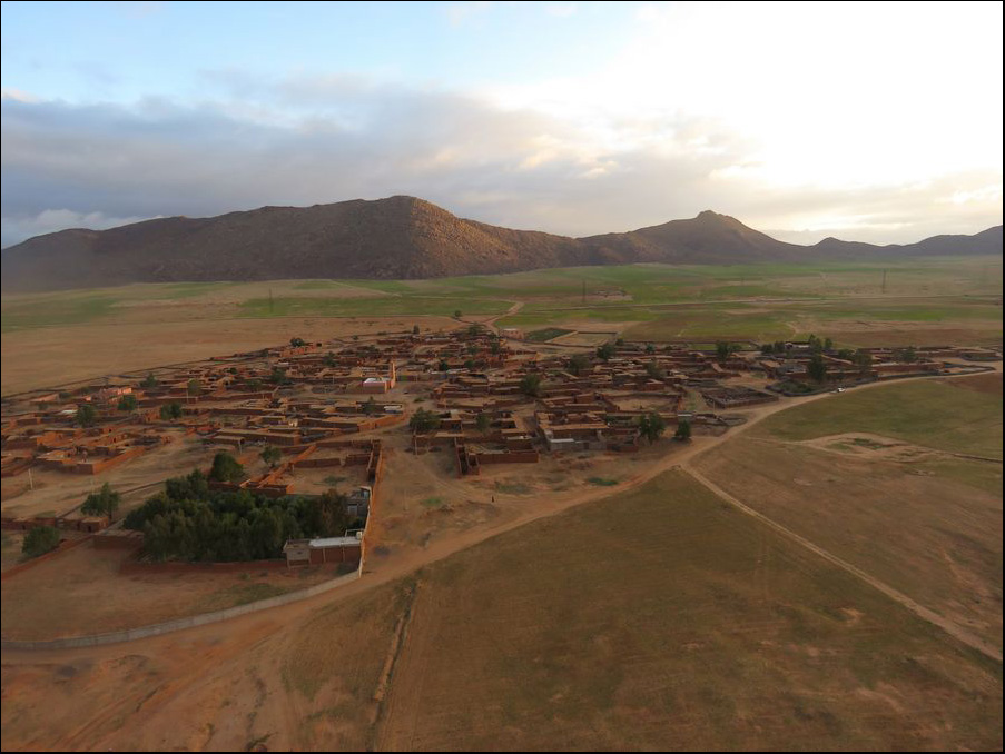 Village seen as we were starting to land in an open field