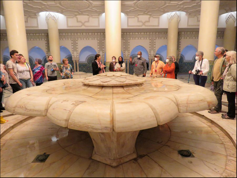 towards Mecca. The walls are of hand-crafted marble and the roof is retractable.